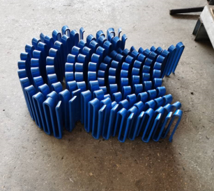 蛇形彈簧聯(lián)軸器屬于一種結(jié)構(gòu)先進(jìn)的金屬?gòu)椥宰儎偠嚷?lián)軸器,它靠蛇形彈簧片嵌入兩半聯(lián)軸節(jié)的齒槽內(nèi)來(lái)傳遞扭矩,主要由兩個(gè)半聯(lián)軸節(jié)、兩半外罩,兩個(gè)密封圈及蛇形彈簧片組成。