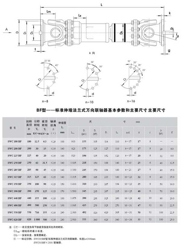 標(biāo)準(zhǔn)伸縮法蘭式聯(lián)軸器的共同特點(diǎn)是角向補(bǔ)償量較大,不同結(jié)構(gòu)型式萬向聯(lián)軸器兩軸線夾角不相同,一般≤5°-45°之間。萬向聯(lián)軸器最大的特點(diǎn)是具有較大的角向補(bǔ)償能力,結(jié)構(gòu)緊湊,傳